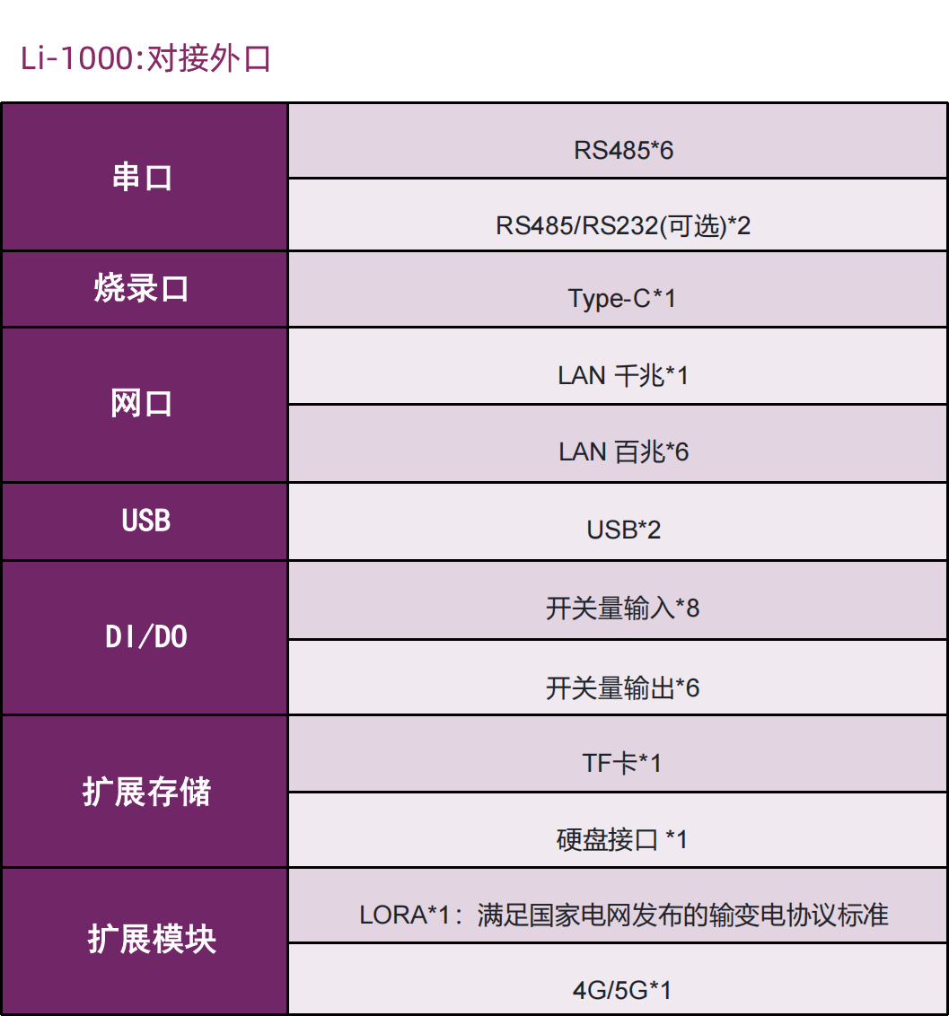 Li-1000系列智能边缘计算网关为客户提供了多种I/O口搭配方式 ,能够满足不同应用场景的应用需求。